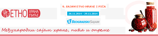 01.01.1970.Od 26. do 29. novembra 2014. godine na Beogradskom Sajmu će se održati 9. Međunarodni sajam etno hrane i pića, najveća smotra proizvođača tradicionalnih proizvoda namenjenih tržištu u Srbiji i regionu Jugoistočne Evrope.