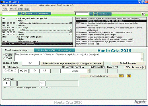 Posebno mesto zauzima aplikacija Honte CrTa koja korisnicima pruža informacije neophodne za uvoz, izvoz i tranzit roba, vodeći korisnika od pojedinačnih informacija (kao što su, na primer, stopa carine, režim uvoza ili izvoza) ka opštim (Carinski zakon i prateći propisi, Zakon o Carinskoj tarifi, Zakon o spoljnotrgovinskom poslovanju i prateći propisi). Svi podaci su povezani, tako da korisnik polazeći od prvog dostupnog podatka može doći do svih informacija od značaja za uvoz, izvoz, odnosno tranzit robe.