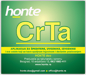 08.12.2015.Preduzeće Honte d.o.o. se više od 15 godina uspešno bavi poslovima izrade specijalizovanih aplikacija za prikaz i pregled propisa iz oblasti spoljnotrgovinskog, carinskog, deviznog, finansijskog poslovanja, javnih nabavki i drugih propisa, adresara kao i izrade aplikacija po porudžbini.