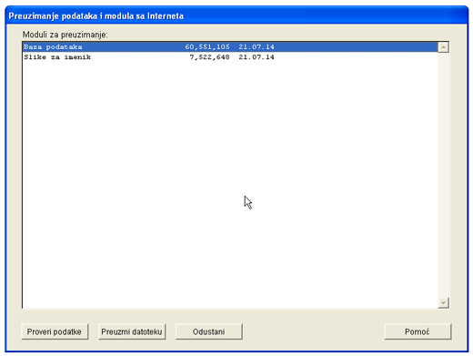 Korisnici Programa Privrednog Imenika Srbije 2014 koji već imaju registrovanu verziju, mogu od danas preuzeti najnovije informacije iz baze podataka Privrednog Imenika Srbije u vidu modula Baza podataka i Slike za imenik, preko opcije Preuzimanje novih podataka i programa u uvodnom ekranu svog programa.